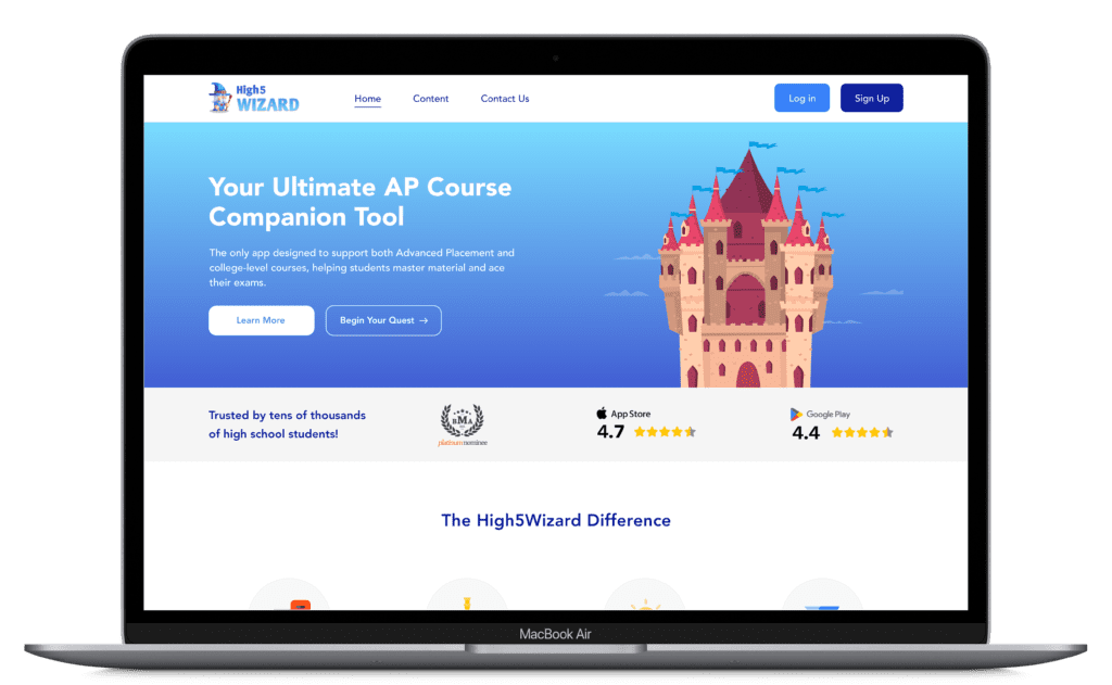 High5Wizard Mobile and Web Platform – Interactive AP and College Exam Preparation App